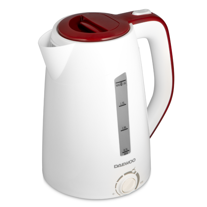 La pava eléctrica DAEWOO de 2 L te ofrece temperatura precisa y máxima practicidad. Con corte para mate, doble medidor de nivel de agua y mango Cool Touch, es ideal para el uso diario. Disponible en rojo o caqui, combina potencia y diseño funcional.